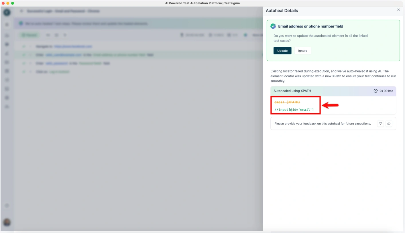 | Test Maintenance | Detects when your app changes, selectors break, or UI shifts and updates the affected tests automatically. This is what “self-healing” means. |