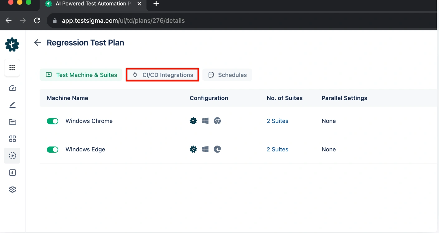1. Connect to your CI/CD pipeline. Testsigma works with GitHub Actions, Jenkins, Azure DevOps, CircleCI, and more.