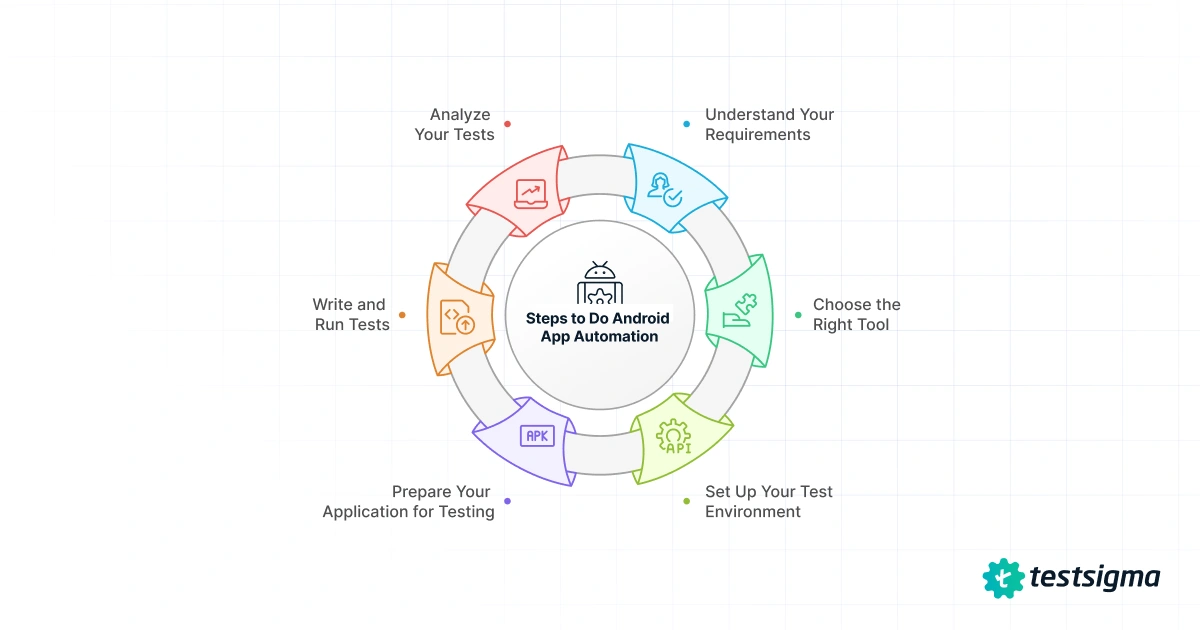 - Choose the Right Tool – Select an automation tool like Testsigma, Appium, or Espresso based on your needs (no-code, native, cross-platform, etc.).