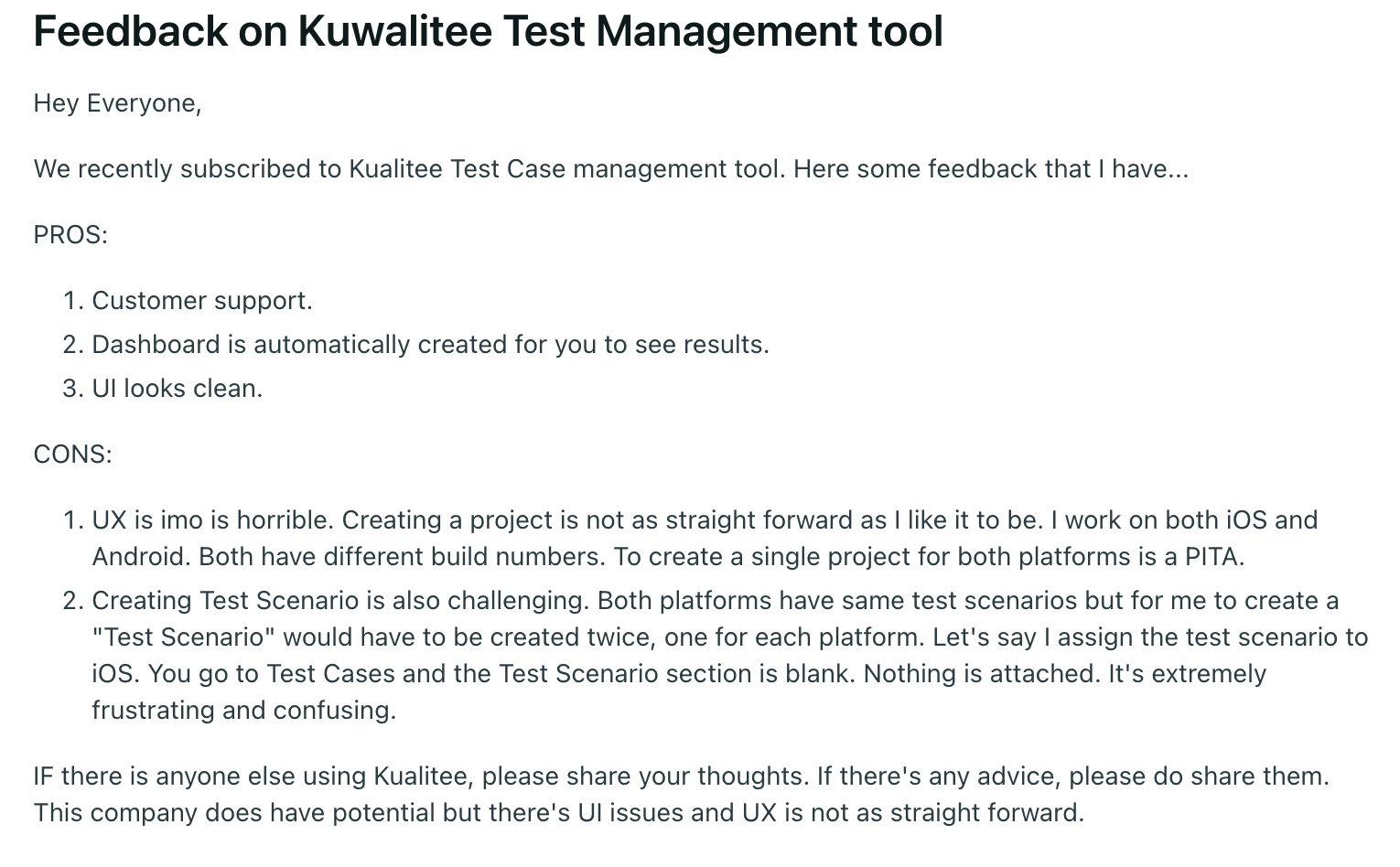 - Example: A government IT project managing multiple requirements and validation stages benefits from Kualitee’s robust test case management and approval workflows.
