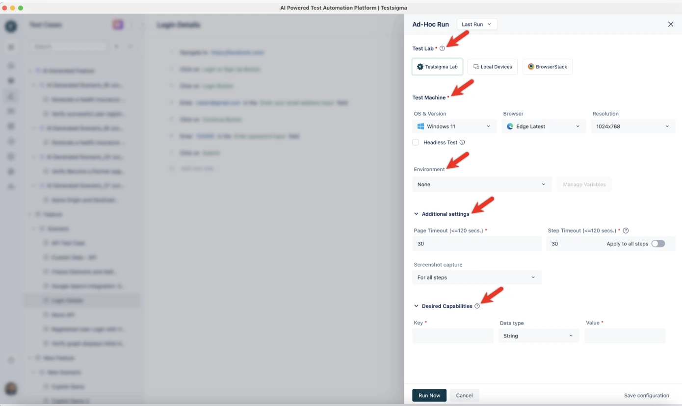 Set up test execution across multiple device-OS combinations from the Test Plan configuration. Select from Testsigma Lab’s 3,000+ real devices.