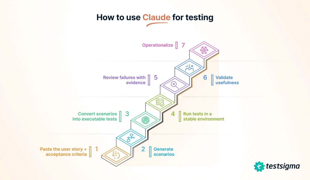 - Use Claude to draft scenarios from Jira/requirements (fast coverage)