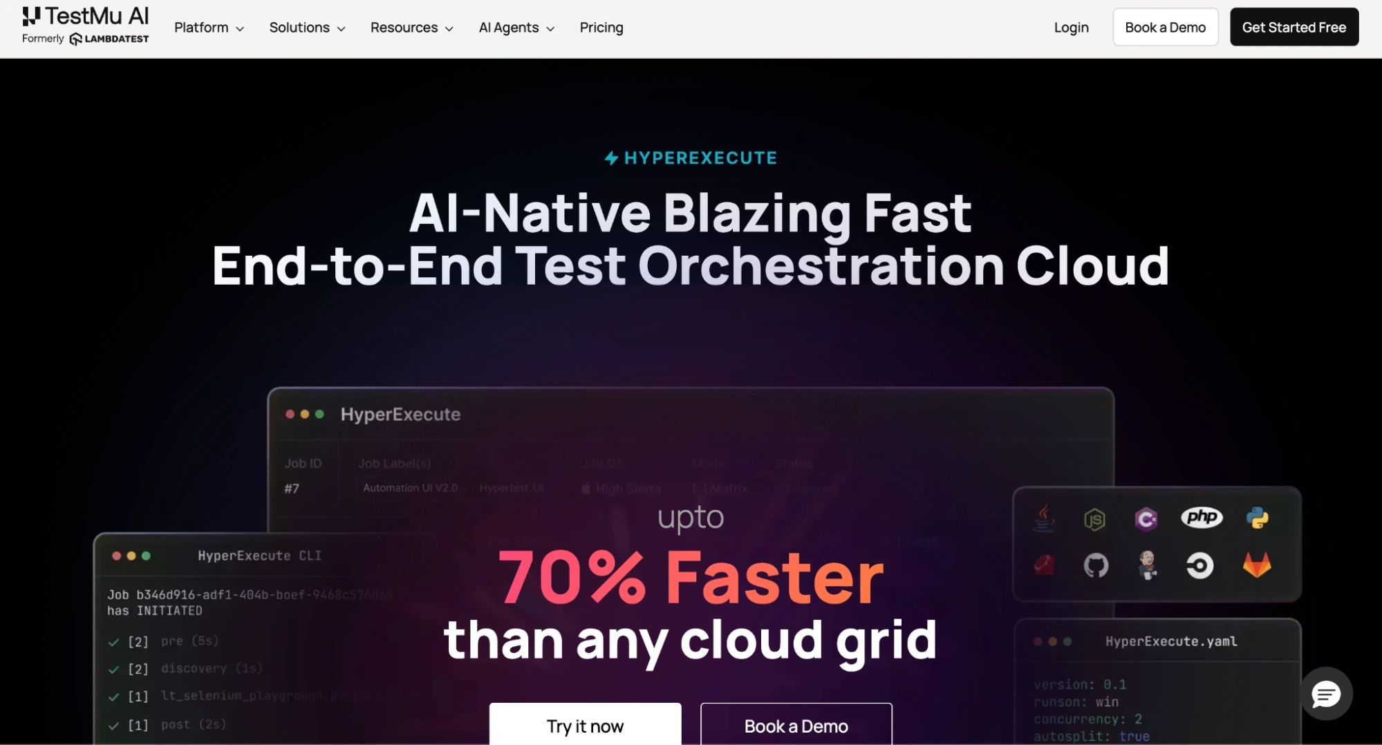 HyperExecute, a part of LambdaTest (now, TestMu AI) is designed for speed, offering high-performance orchestration for large and complex test suites.