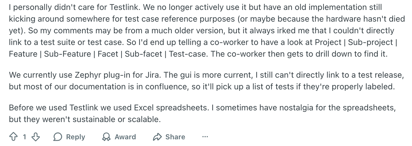 - User complaints from real-world use: In community discussions, users have described TestLink as “tedious to use,” especially when test cases grow large or when they need to track large numbers of cases. One user wrote:
