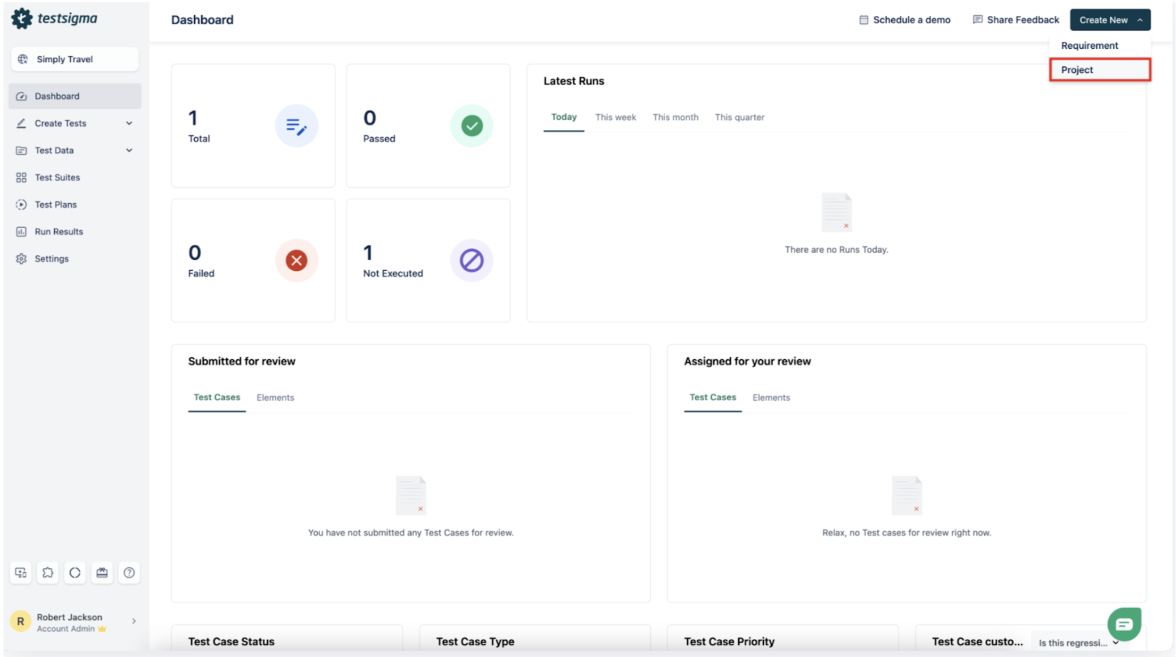 - Select Test Cases from the side bar, fill in the name and description, then press Next