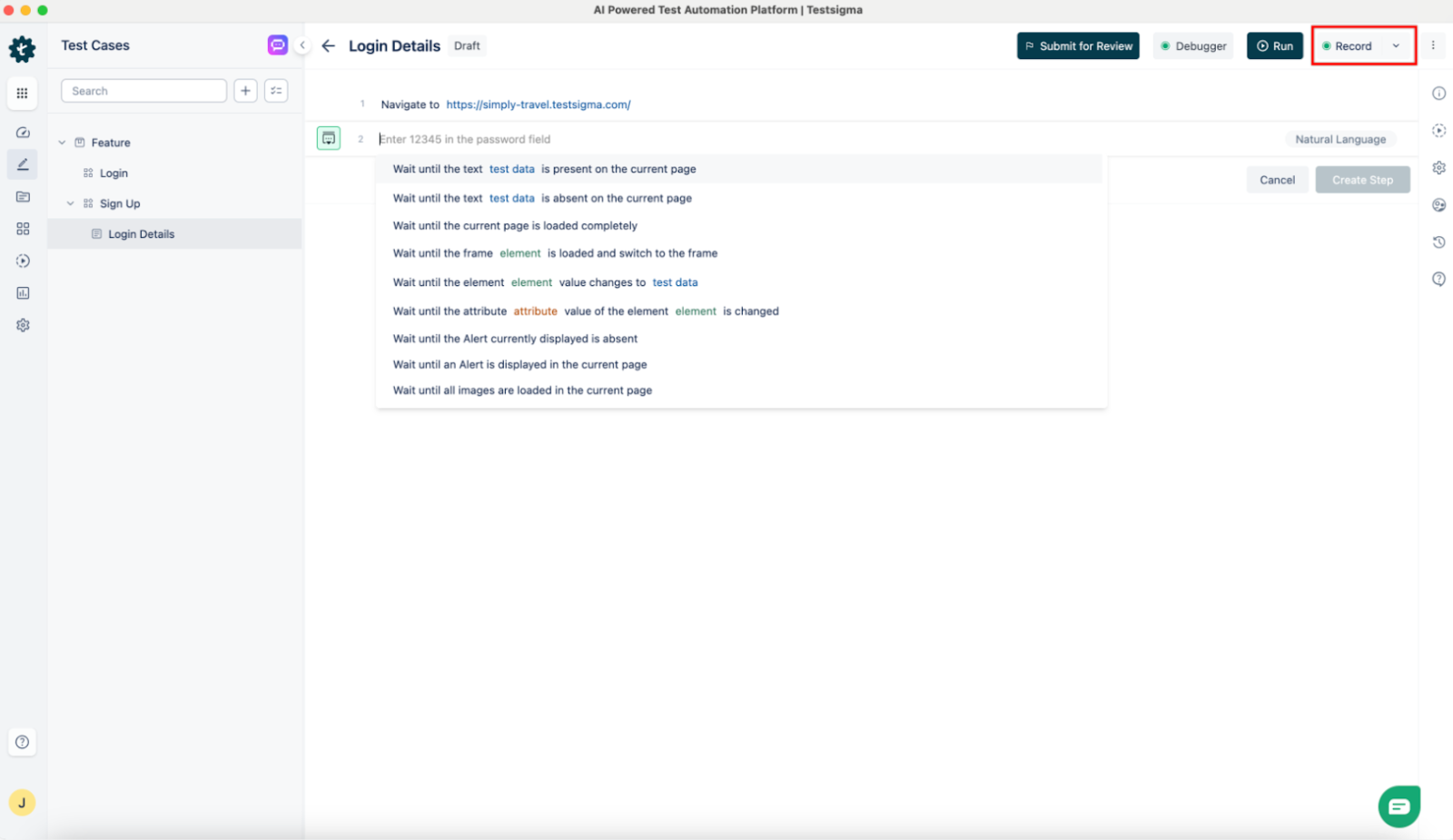 Step 4: Record Test Steps