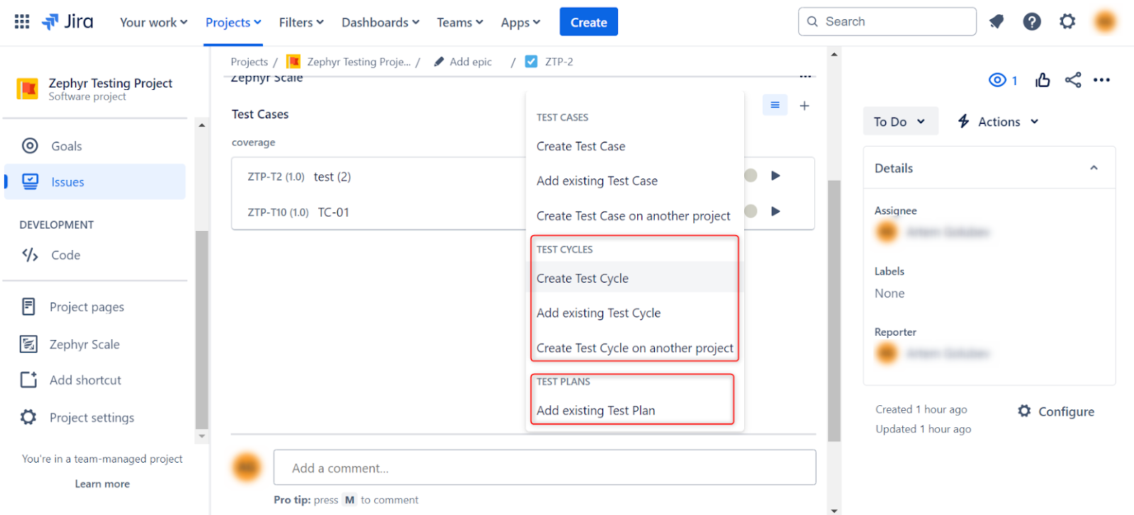 - Create Test Cycles (within or linked to Test Plans) and assign test cases to those cycles for execution.